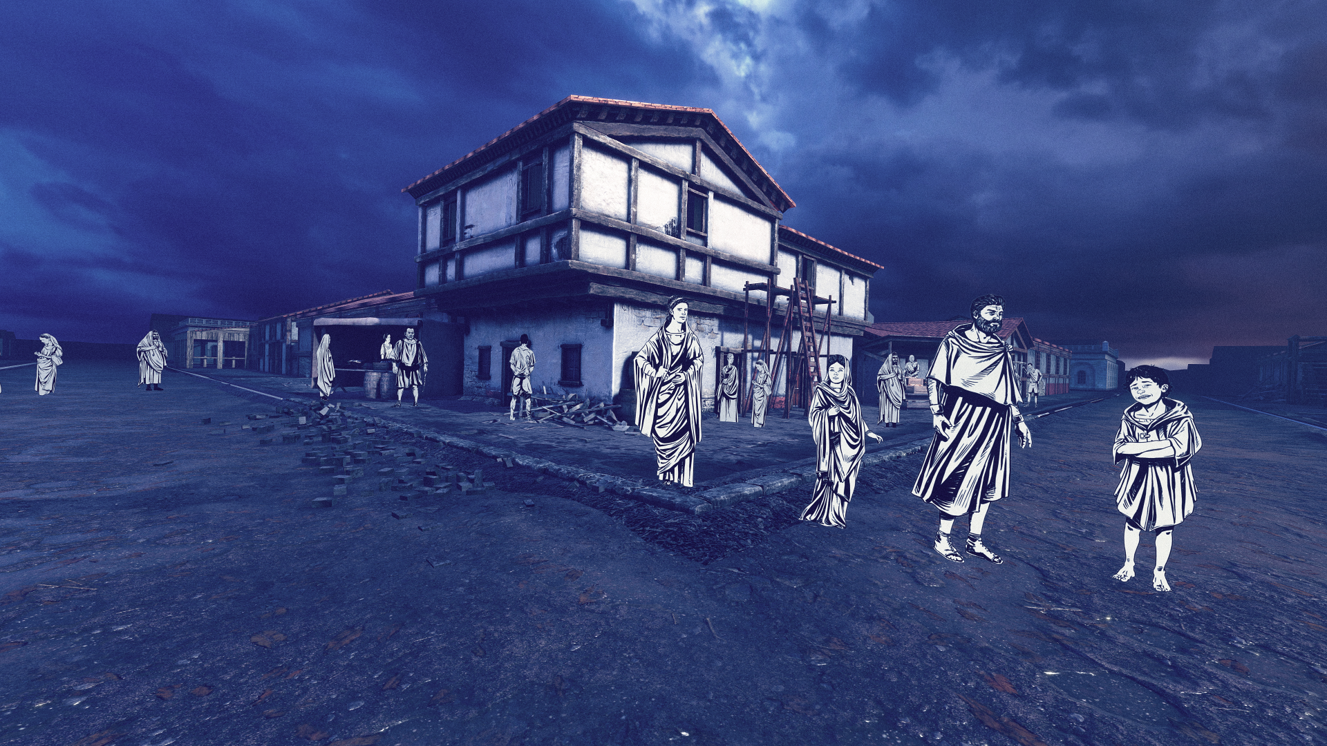 Reconstruction of the ancient roman city of Flavia Solva with the temple disctrict and the amphi theatre for VR and big touch screens….